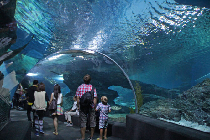 Однажды попав сюда, равнодушными не останутся ни дети, ни взрослые. Океанариум разделен на несколько зон, где представлены акулы, медузы, змеи, водяные крысы. В определенные часы здесь показывают шоу пингвинов.