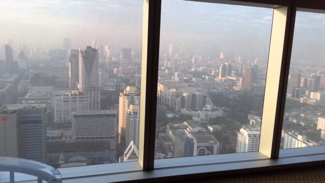 В вечернее время перед закатом иностранцы поднимаются на самый верх башни, где расположена вращающаяся панорамная площадка. Небоскреб находится в центре города, а его посещение доступно в течение дня до 22-30 часов. Со смотровой площадки Байок Скай (Baiyok Sky) можно сделать фото Бангкока, увидеть оживленный центр и маленькие микрорайоны на окраинах города.