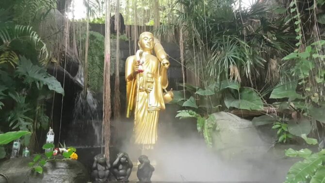 Чтобы осмотреть статую, поток туристов движется против часовой стрелки вокруг нее, в то время, как Будда находится в ожидании нирваны. Во время прохода, можно увидеть необычайные картинки на стенах, которые рассказывают о жизни учеников Будды. В отделке храма применены мрамор, драгоценные камни и золото.