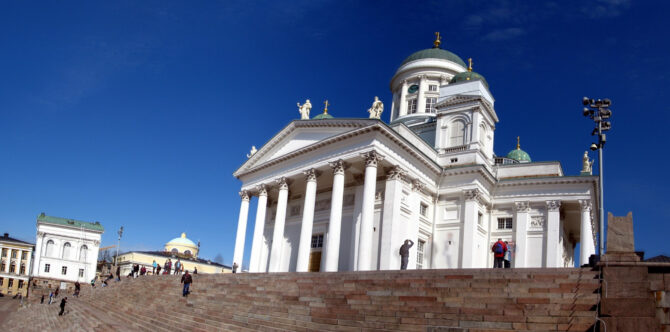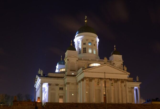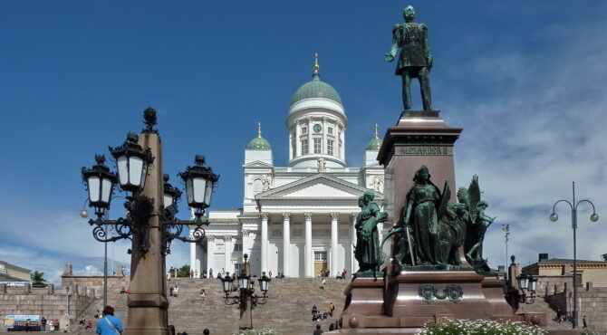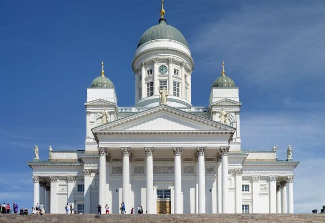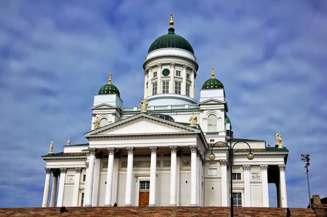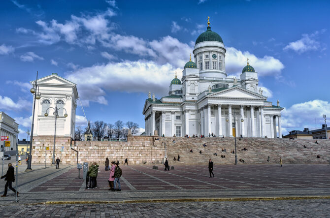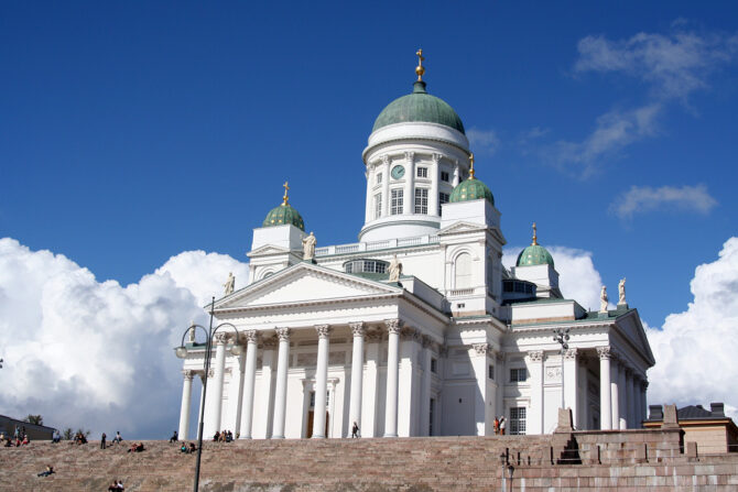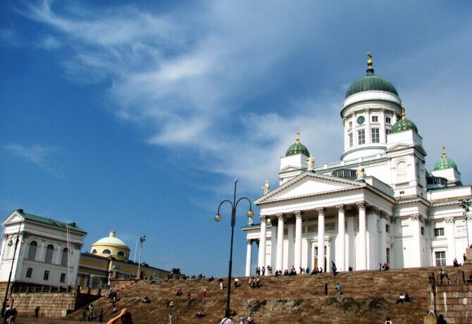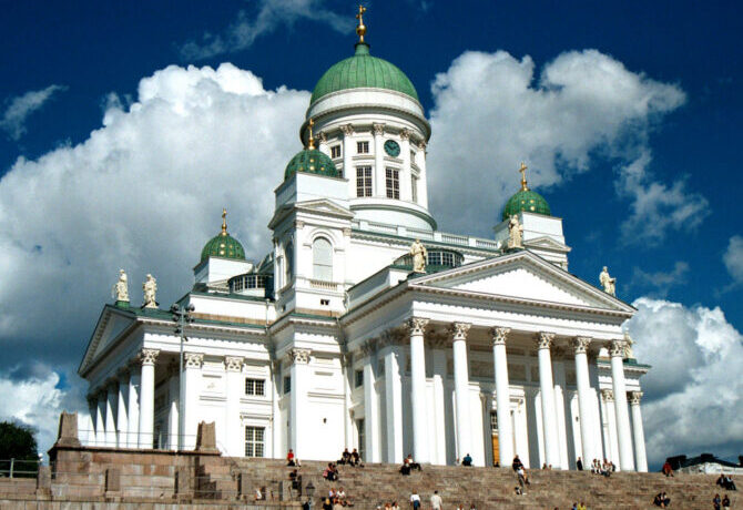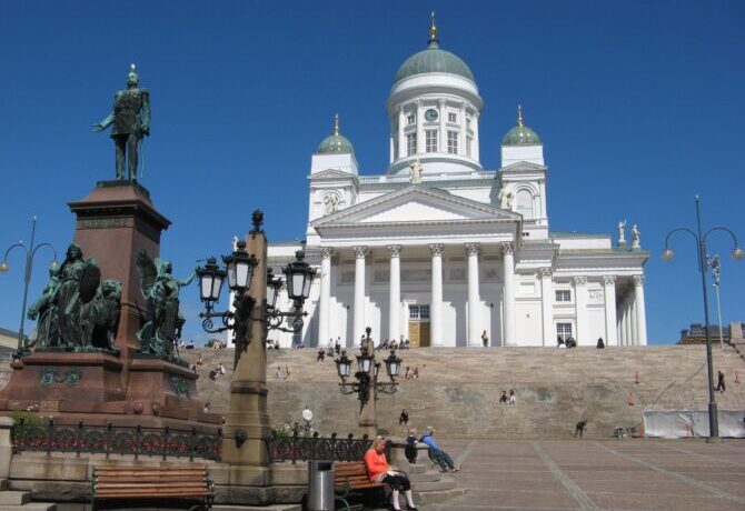 Одна из главных достопримечательностей Хельсинки – Кафедральный собор, который расположен на Сенатской площади. Здание строилось более 20 лет в середине 19 в. Его архитектура довольно строгая, без излишеств. Здание собора венчает большой купол, а над храмом возвышаются скульптуры 12 апостолов.