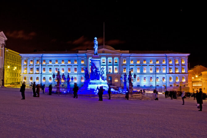 Сенатская площадь – традиционное место проведения множества мероприятий, самое яркое и необычное из которых – празднование дня Люсии. В этот день среди жительниц Финляндии выбирают королеву Света, а коронация проходит при большом скоплении народа. Победительнице надевают корону с горящими свечами.