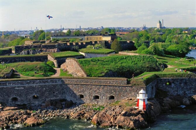 Крепость Суоменлинна была возведена в середине XVIII века. Это укрепительное сооружение занимает несколько скалистых островов недалеко от Хельсинки. Почти все острова связаны между собой косами. Построенная шведским правительством, крепость Свеаборг за несколько веков пережила множество войн, была в собственности Швеции, России, Финляндии.