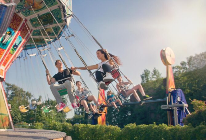 Аттракционы, установленные в парке, произведены в разных странах мира. Здесь можно развлечься, собравшись компанией, или отдохнуть всей семьей. Наряду с аттракционами для самых смелых, в парке работают бесплатные развлечения. Например, можно отправить малышей покататься на маленьком паровозике, который движется на низкой скорости и позволяет наблюдать за происходящим в округе из вагончика.