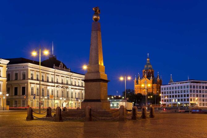 Главная площадь города, на которой находятся интересные архитектурные и исторические памятники. Сенатская площадь Хельсинки была построена в середине 19 в. Главная достопримечательность этой площади – Кафедральный собор, поднявшись на ступени которого, можно увидеть панораму, сохраненную на протяжении нескольких столетий в первозданном виде.