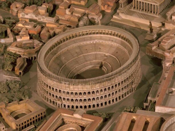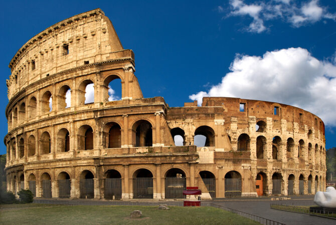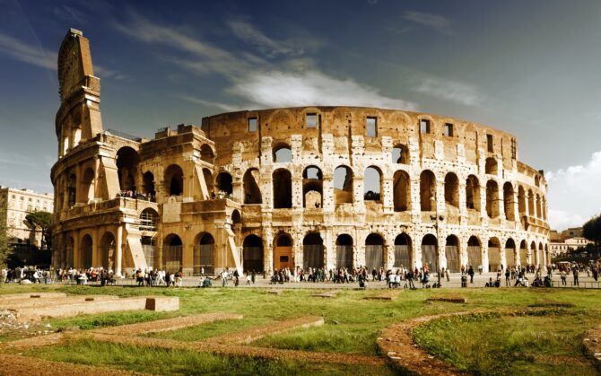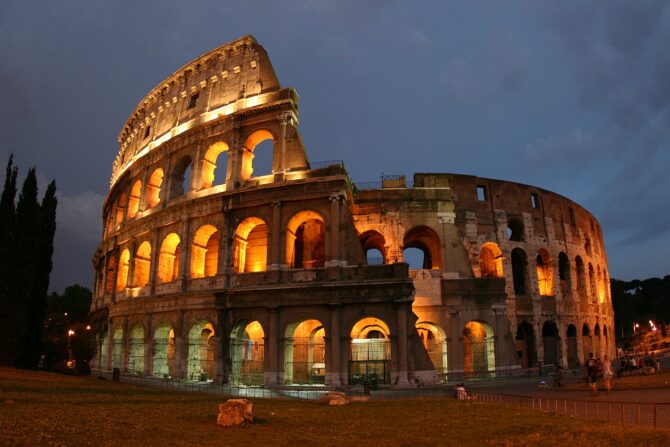 Колизей – главная достопримечательность столицы Италии. Этот поражающий своими масштабами объект был построен в 80-е гг. н. э. По разным оценкам современных историков Колизей мог вместить до 50 тысяч зрителей. На его арене проводились бои гладиаторов и звериная травля, а также массовые выступления правителей Вечного города перед его жителями.