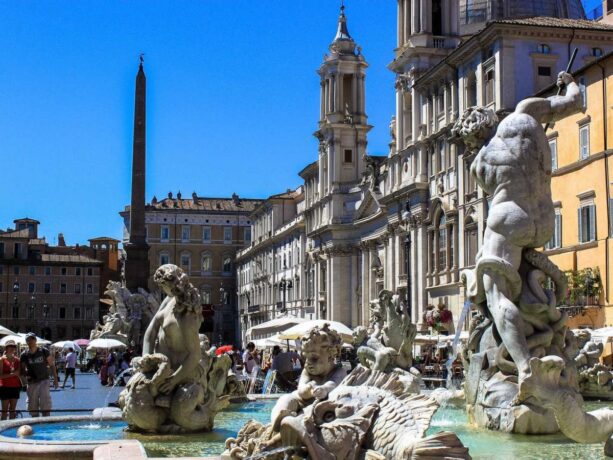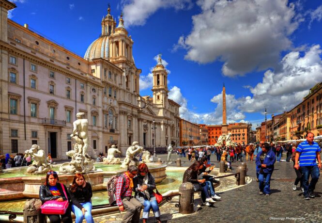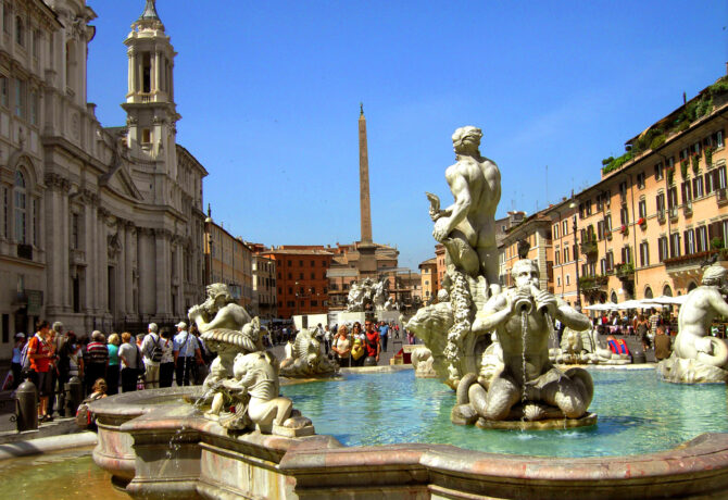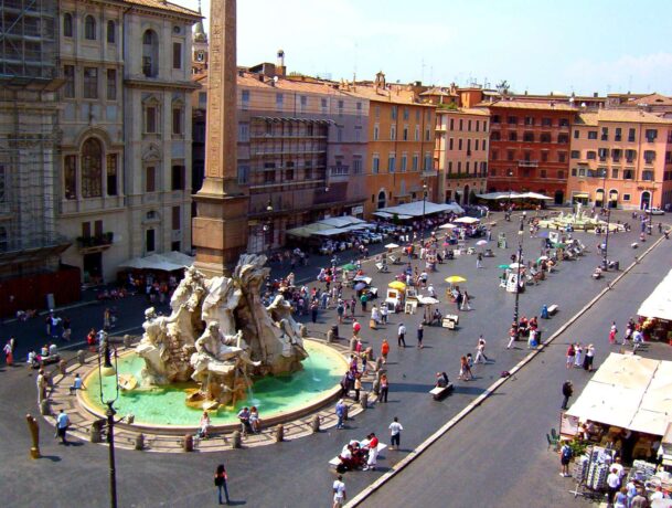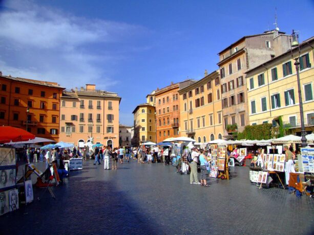 Одна из самых известных площадей Рима. Площадь Навона в разное время использовалась и, как стадион, где соревновались атлеты, и как цирк, и даже, как рынок. Сегодня сюда приходят туристы, а также на этой площади города собираются местные жители, чтобы пообщаться и просто отдохнуть.