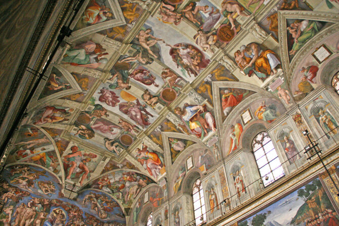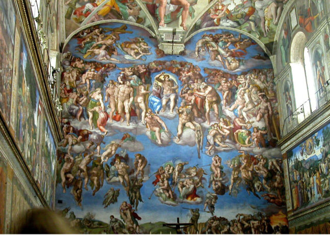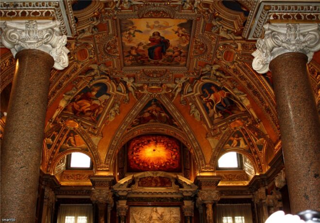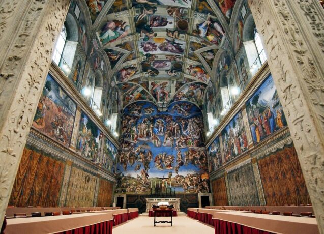 Внутренние помещения и залы Капеллы великолепны. Посетить ее стоит хотя бы ради того, чтобы увидеть уникальное и потрясающее произведение Микеланджело Буонарроти – расписанный фресками потолок площадь 1 тыс. кв. м. Сикстинская капелла находится рядом с Собором Святого Петра по адресу: Ватикан, Citta del Vaticano 1, 00120.