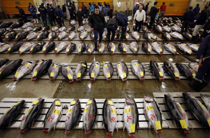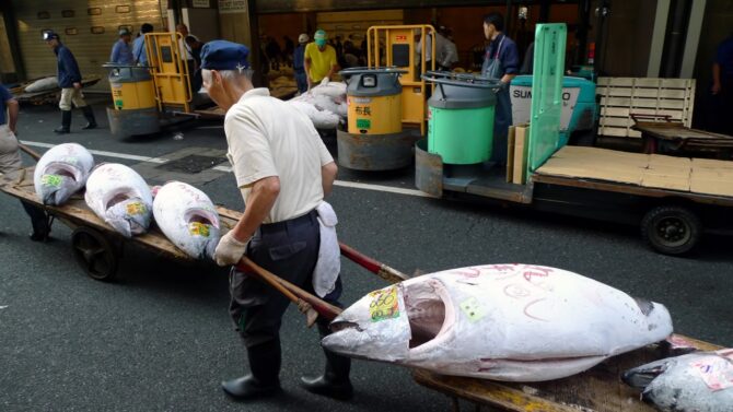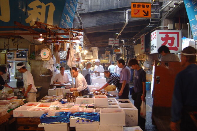 Рынок Цукидзи – это один из самых крупных рынков Токио. Здесь можно купить все что угодно: рыбу, фрукты и овощи, морепродукты, а также мясо и даже цветы. На этом рынке в день продается более 2 тыс. тонн рыбы и других даров моря.