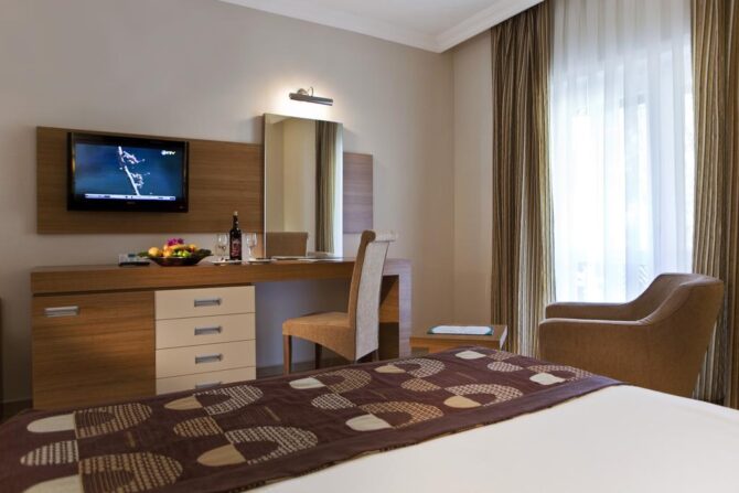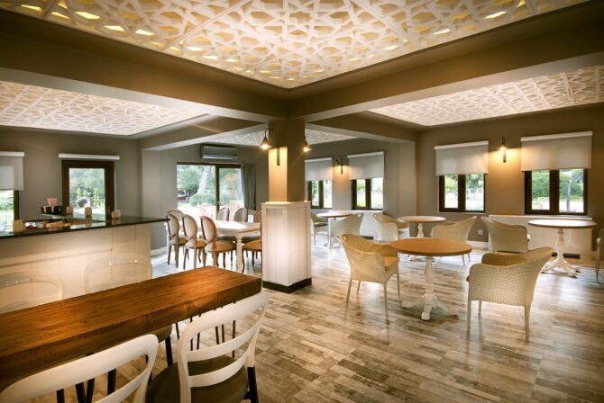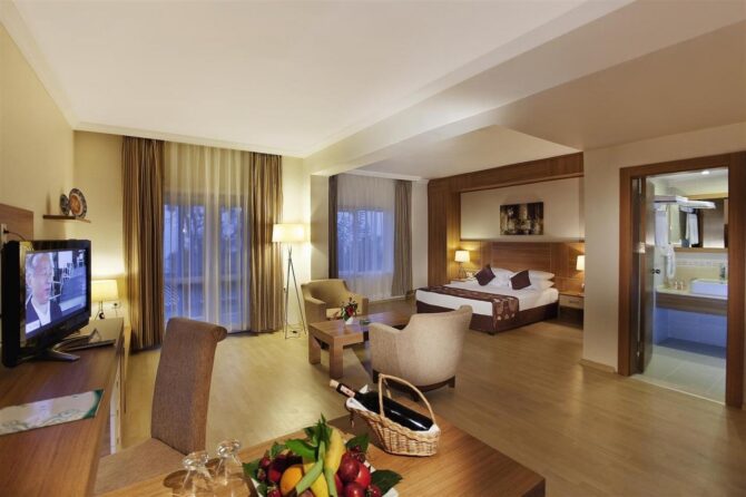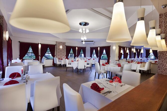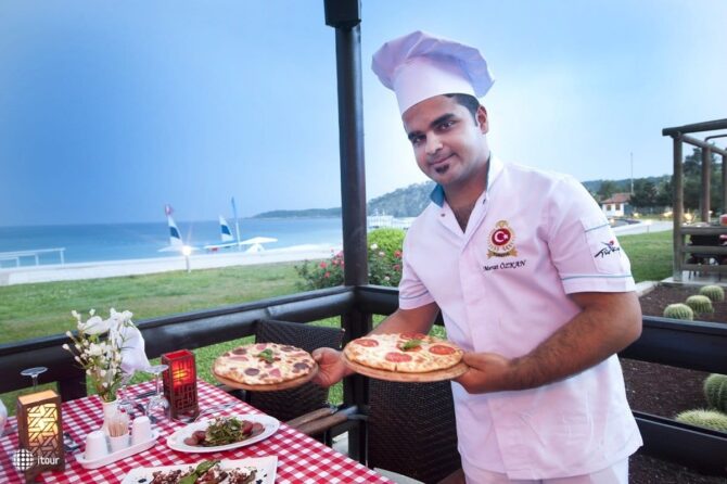 На всей территории комплекса работают бары с алкогольными и безалкогольными напитками импортного и местного изготовления. Пиццей, лепешками и легкими закусками можно перекусить в снэк-баре. Свежую выпечку, сладости и кофе подают в уютном кафе. Круглосуточно работает лобби, где есть горячие и холодные напитки без содержания алкоголя. До двух часов ночи в Turkuaz Restorant можно попробовать оригинальные закуски.
