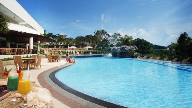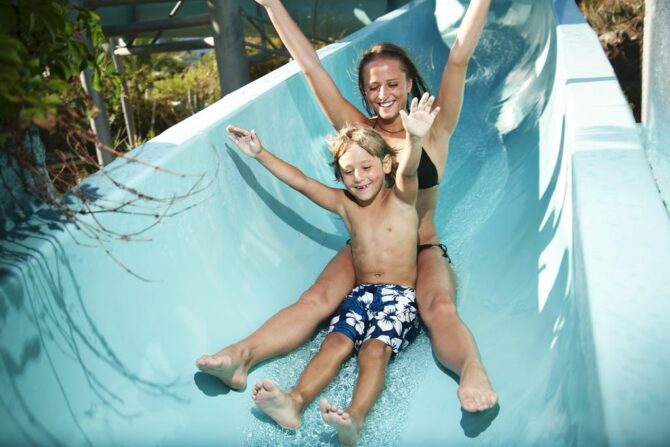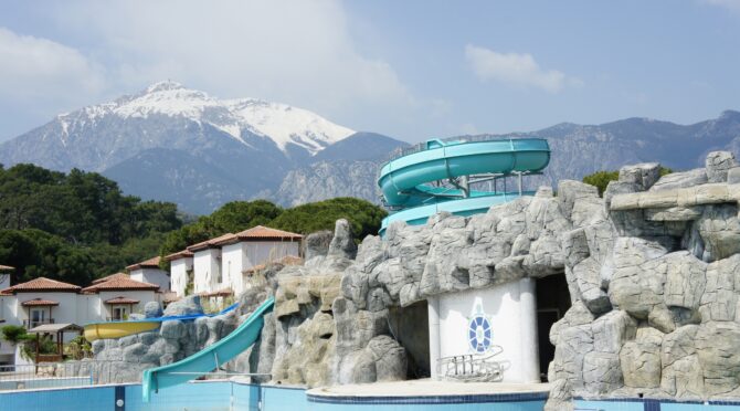 В клубе есть 5 бассейнов, которые в общем занимают 2044 м2. Они оснащены детскими и взрослыми горками, бесплатными шезлонгами, зонтами и раздевалками.