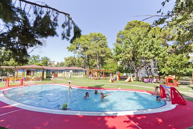 Администрация отеля не забыла также о маленьких посетителях. Для них оборудована комната, игровое помещение, мини-диско, отдельный ресторан, площадка для спортивных конкурсов, водные горки в бассейнах. Профессиональные аниматоры уделяют внимание каждому ребенку, поэтому о досуге детей можете не беспокоиться. Здесь есть три клуба для разных возрастных групп: