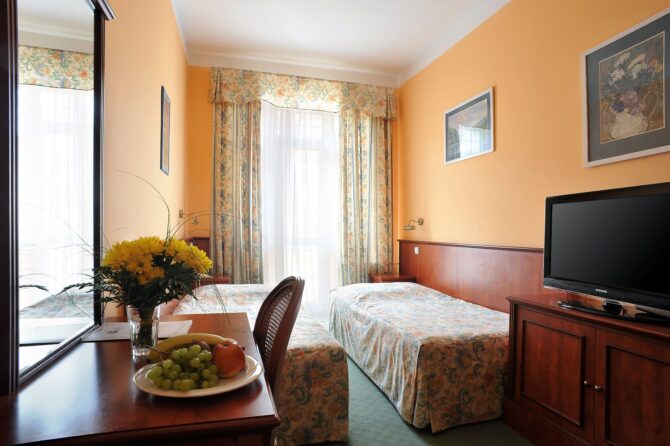 - Стандартные рассчитаны на 3 человека, оснащены телевизором, феном и телефоном. Есть балкон с видом на море или горы.
