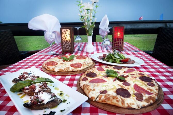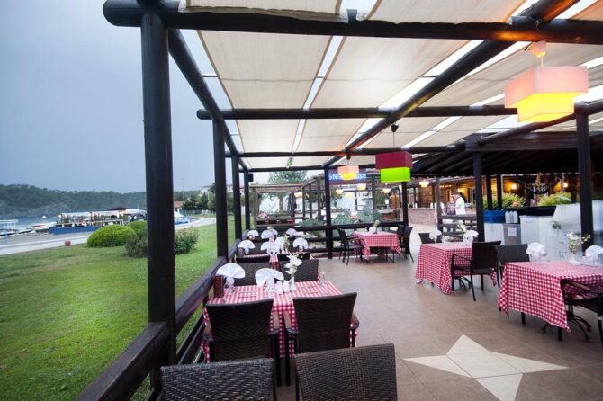 Хотите провести ужин в романтической спокойной обстановке? Заранее бронируйте столик в одном из заведений а-ля карт. Там официанты возьмут заказ по меню и обслужат вас на высшем уровне. Есть три вида заведений с турецкой и американской кухней, рыбой и морепродуктами.