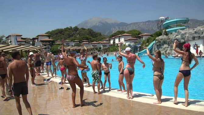 - Мини (4 – 7 л.) предлагает игры в бассейне, костюмированные представления, олимпиады, уход за внешностью, охоту за сокровищами, кулинарные курсы, волейбол, баскетбол, есть батут, настольный теннис. Семьей можно покататься на банане.