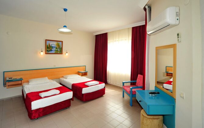 Стандартные номера располагают уютной спальней, ванной комнатой и балконом. Они оснащены кондиционером, телевизором, феном, холодильником. На ТВ спутниковая антенна, поэтому можно смотреть каналы на родном языке. Во всех комнатах прекрасно ловит скоростной интернет Wi-Fi.