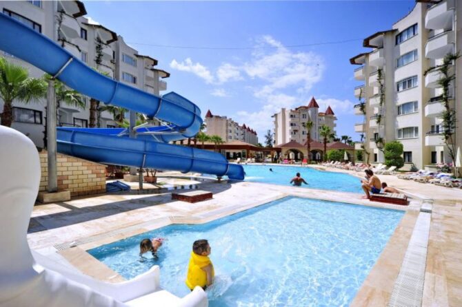 Родители могут не переживать по поводу высоких унитазов в туалетах, так как ребенку предоставляют ночной горшок совершенно бесплатно. Для совсем маленьких детишек можно арендовать коляску, чтобы было удобно передвигаться по территории курорта. Также отдельное спальное место оборудуют для малыша в одних с родителями апартаментах.