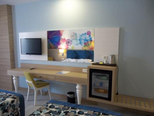 Михаил, Нефтеюганск: «Мы здесь отдыхали втроем – я, жена и дочка 6 лет. Нас все устроило. О ресторане могу сказать, где мы обедали, завтракали и ужинали, что очень много разных блюд. Порадовали, особенно дочку, сладости. В перерывах между основными приемами пищи можно насладиться гюзлеме, покушать гамбургер или картошку фри в баре на пляже. Всего здесь 4 бара, включая и тот, что находится в ресторане. В одном вечером проводят дискотеки для детей и для взрослых».