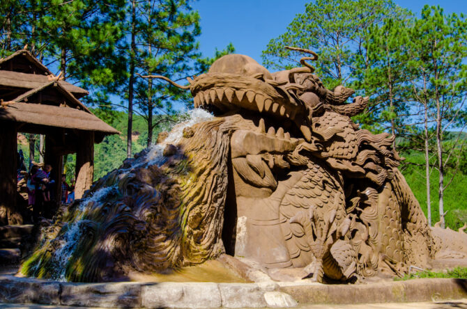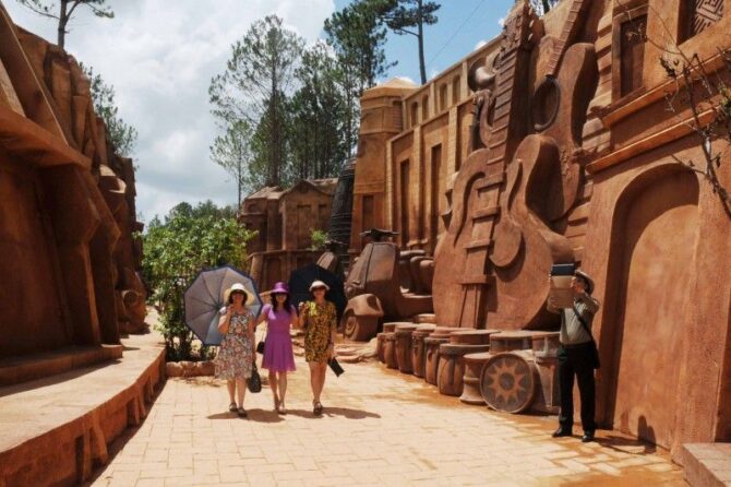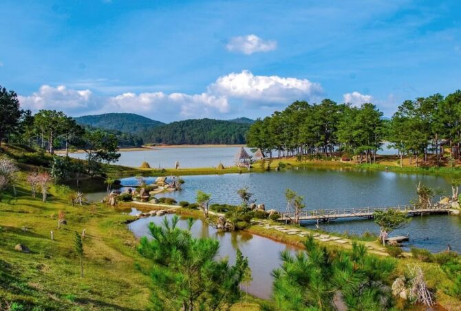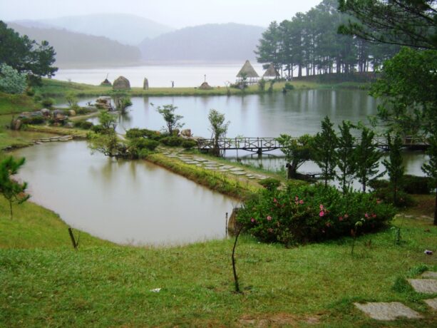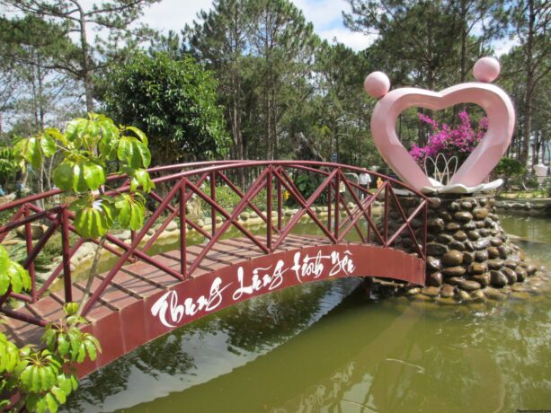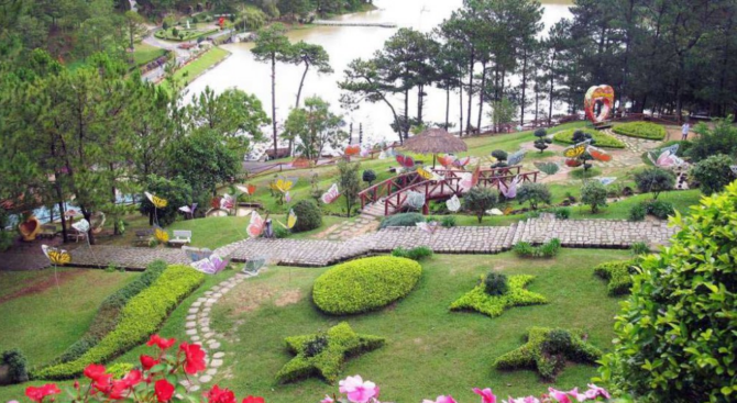 Еще один тематический парк носит название Долина Любви. Во времена колонизации, это место облюбовали для отдыха французы. Они первыми назвали долину «Валле-д’Амур». Затем ее переименовали, а после 1975 года вернули прежнее название. Это не только популярный туристический объект, но и место, где любят вступать в брак молодожены. В 1998 году долина была признана местом красоты национального значения. Достопримечательность находится в 6 км от центра Далата, поэтому можно прогуляться пешком, стартовав от центрального рынка. Чтобы по-настоящему оценить прелесть пейзажей, нужно пройти по естественным и рукотворным тропам, полюбоваться цветочными воротами и многочисленными статуями, установленными по всему парку, прекрасным искусственным озером с поросшими берегами.