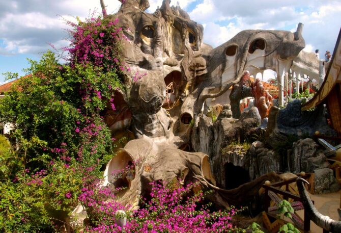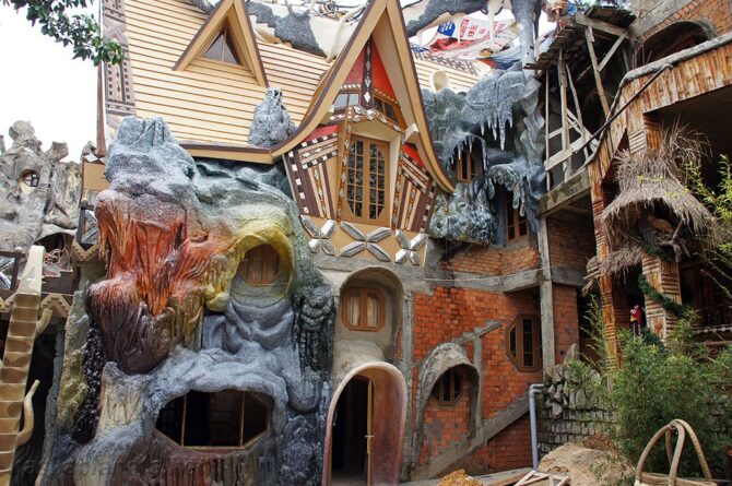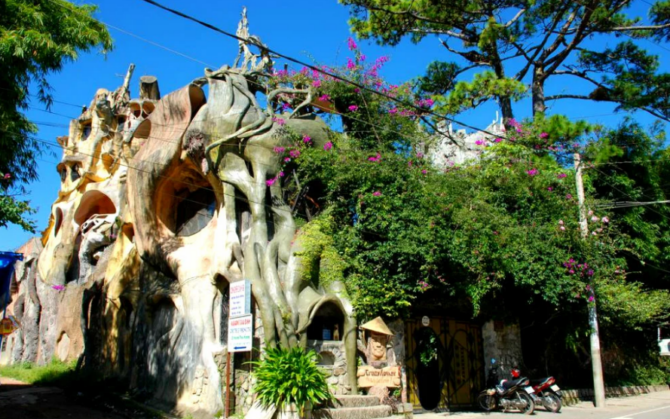 В мире найдется немало туристов пожить в необычных условиях. Такие отели, как «Крейзи Хаус» — редкость, поэтому, несмотря на высокие цены (от 60$ за ночь), он пользуется огромным спросом у путешественников. По задумке архитектора, дом напоминает Древо мироздания. Номера расположены на ветвях, в дупле, в корневой системе и даже в паутине. Все элементы декора, строительные материалы и отделка имитируют многообразные формы природы. Причудливые интерьеры созданы хозяйкой гостевого дома – госпожой Нга. Она много лет живет в этом доме, но экскурсии для гостей сама не проводит.