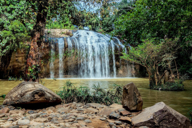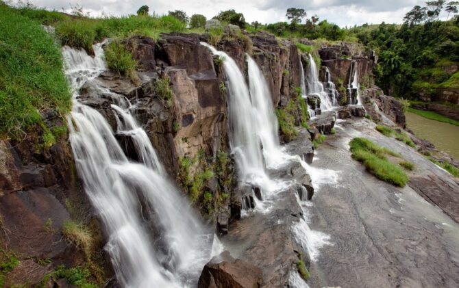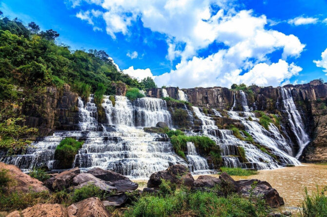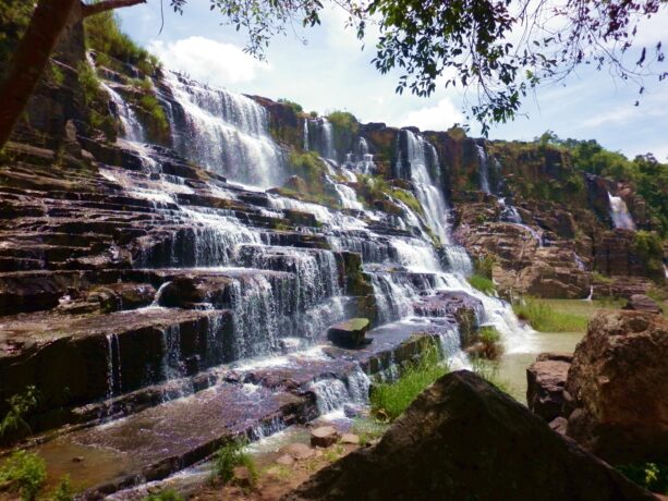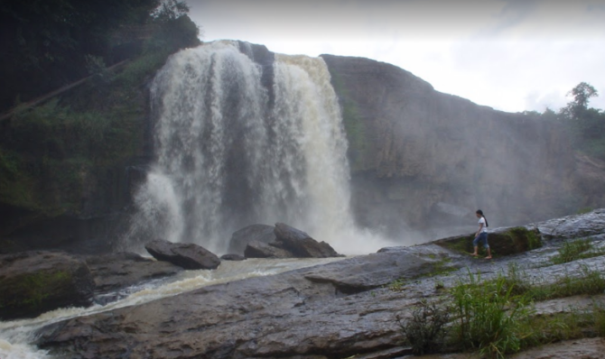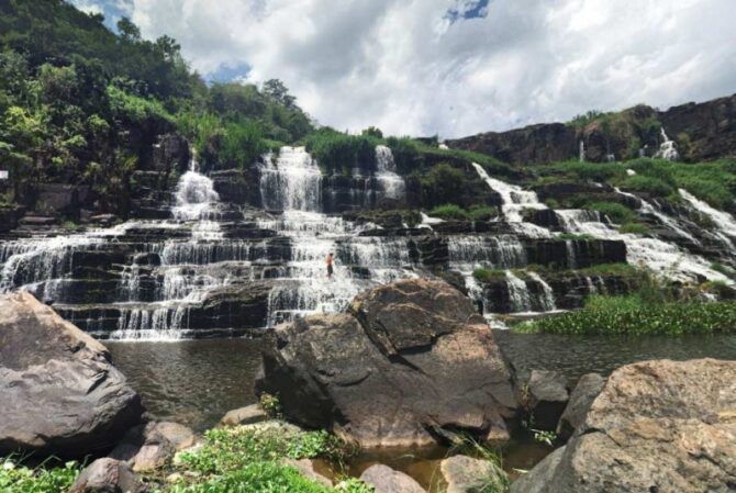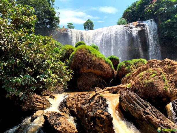 Самый мощный водопад провинции находится недалеко от аэропорта в 40 км от Далата. Обычно его посещают в конце тура, включающего горный монастырь Трук Лам, парк Пренн, водопады Понгур и Данатла. Вход на территорию – 10 тысяч донгов, парковочное место – 5 тысяч. Местность не благоустроена, купаться нельзя. В целях безопасности установлен металлический заборчик, мостик с поручнями. По тропинке вниз может спуститься только взрослый здоровый человек. Пенсионеры и дети будут чувствовать себя неуютно. Возле этого водопада обычно долго не задерживаются, хотя туристов днем бывает очень много.