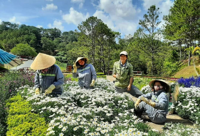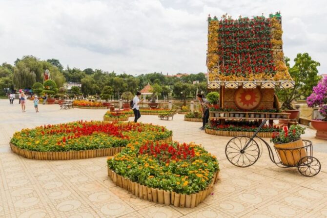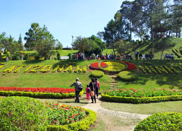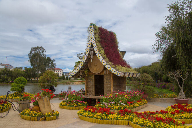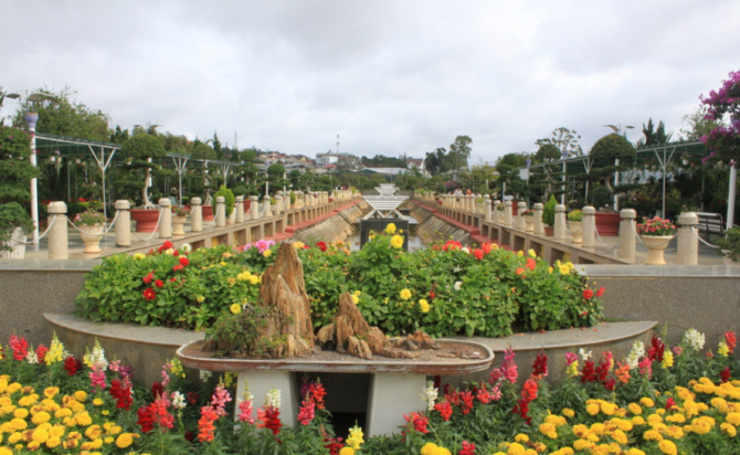 После веселья, подаренного 3D выставкой-музеем, стоит прогуляться по цветочному парку Далата. Он находится в непосредственной близости от центра и представляет собой шедевр ландшафтного дизайна. Он считается природным музеем, в котором хранится прекрасная коллекция местных и экзотических цветов. Парк состоит по меньшей мере из 300 различных видов цветов, сотни из которых цветут круглый год. Их подбирали в зависимости от периода цветения, поэтому сад никогда не кажется пустым и бесцветным. Когда одни растения отцветают, тут же распускаются другие. Найти сад цветов достаточно легко. Ориентиром послужит озеро Суан Хыонг, на северо-восточном берегу которого издалека видна высокая цветочная арка.