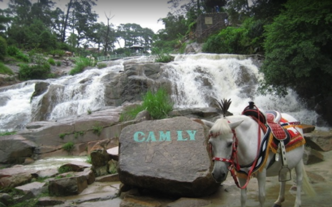 Живописный водопад Камли был признан туристической достопримечательностью еще в 1911 году. Он находится на окраине Далата, всего в 2-х км от центра. Его высота достигает 15 метров, а вода ниспадает каскадами благодаря нескольким уровням. Территория вокруг водопада постоянно благоустраивается, но купаться в нем нельзя. Во-первых, его питают несколько речушек, собирающие по округе все сточные воды. Во-вторых, во время дождей в воду попадает большое количество городского мусора. В-третьих, на его вершине находится кладбище, что само по себе является странным для иностранных туристов. Вход на территорию платный – 6 тысяч вьетнамских донгов (за фотографирование берется доплата в 20 тысяч). В качестве развлечений предлагаются верховая езда, стрельба из лука, светомузыкальное представление по вечерам.