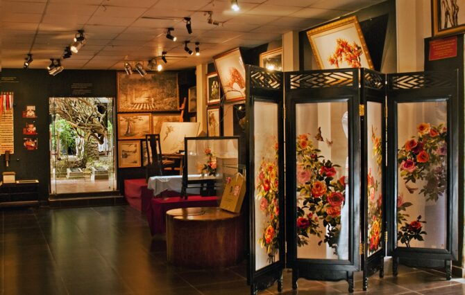 В музее открыто 9 выставочных залов, в которых представлены следующие выставки: Этапы истории; археологические объекты, модели убежищ, орудия охоты, ремесленные деревни, традиционные костюмы, народные фестивали и предметы двух войн сопротивления. На территории построена этнографическая деревня. Здесь можно не только воочию увидеть быт вьетнамских крестьян, но и поучаствовать в народных праздниках и играх.