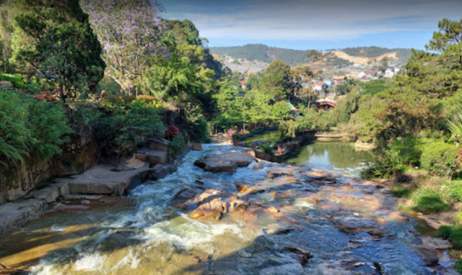 Рядом с водопадом находится небольшой и немноголюдный парк. По нему приятно прогуляться в жаркий день, посидеть на лавочке, полюбоваться клумбами. Отелей рядом нет. Самый ближайший находится на расстоянии 1,7 км. Зато недалеко работают кафе с интересной кухней. В Moto Laurie готовят австралийские блюда, в Mì Than Tre — Đen Đen подадут малазийскую и сингапурскую еду, а Le Petit Dalat — Ana Mandara порадует любителей изысканного французского меню.