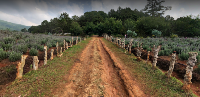 В окрестностях Глиняной деревни есть участок парковой зоны, полностью отданный под выращивание лаванды. После экскурсии можно заглянуть в кафе, выпить чашку кофе и полюбоваться на лавандовое поле. Вход платный – 50 тысяч донгов, поэтому желательно приезжать в период цветения, чтобы не пожалеть о потраченном времени и деньгах. Лаванда цветет в марте. Любителей природных фотосессий в это время ждут необыкновенные впечатления. Следует обратить внимание, что за фотосьемку новобрачных владельцы могут потребовать доплату.