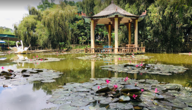 В магазине орхидей продаются луковицы и растения в горшочках. Рядом находится лавка традиционной вьетнамской одежды. За небольшие деньги владельцы дают наряды в аренду. Можно надеть их и прогуляться по аллеям, почувствовав себя вьетнамскими богачами. Парк действительно красив и очень ухожен. Через его центральную часть протекает речушка, посреди которой стоит небольшой зеленый островок. К нему можно дойти по мостику. в центре острова установлена бронзовая статуя женщины с кувшином в руках.