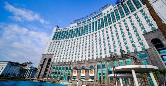 Wyndham Legend Halong 5* – это сетевой отель, построенный рядом с мостом. Это первый местный гостиничный комплекс, полностью отвечающий международному пятизвездочному стандарту. Он спроектированный в современном стиле, предусмотрены просторные конференц-залы, разнообразные рестораны, исключительные услуги и первоклассные удобства. Наряду с 450 просторными номерами и люксами, отель предлагает стандарты мирового класса как для деловых путешественников, так и для туристов. В шаговой доступности от комплекса находится тематический парк отдыха Гранд Азия. Питание организуется в пяти ресторанах и барах. В меню представлены блюда от вьетнамской кухни до азиатского и западного кулинарного искусства. Повара используют свежие ингредиенты и тщательно подобранные специи, чтобы доставить подлинные ароматы сочных блюд и отличные услуги любителям изысканных блюд. В ресторане Blue Bay находится открытая кухня, в которой деликатесы готовятся на глазах у гостей. Здесь предпочитают останавливаться путешественники, привыкшие к брендовому сервису, к тому же международная сеть Wyndham Hotels & Resorts предоставляет скидки своим постоянным клиентам.