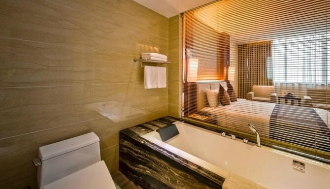 Best Western Premier Sapphire Ha Long 5* — многоэтажный гостиничный комплекс, расположенный на берегу залива. Он находится в нескольких минутах ходьбы от Международного круизного порта Халонг, музея Куангнинь, торговых центров и многого другого. Этот высококлассный отель идеально подходит как для деловых людей, так и для туристов. Стоит обратить внимание, что на его территории нет мест для курения. Это 100-процентно свободная зона от табачного дыма. Завтрак входит в стоимость проживания. К услугам гостей: коктейль-бар, тренажерный зал, крытый бассейн на 1-м этаже, консьерж, носильщик, несколько зон отдыха с панорамными видами. СПА-процедуры оплачиваются отдельно. Несколько номеров обустроены для приема людей с ограниченными возможностями здоровья. В них установлены низкие раковины, туалеты оборудованы поручнями, у дверей убраны порожки. Гостям нравится уровень обслуживания и условия проживания.
