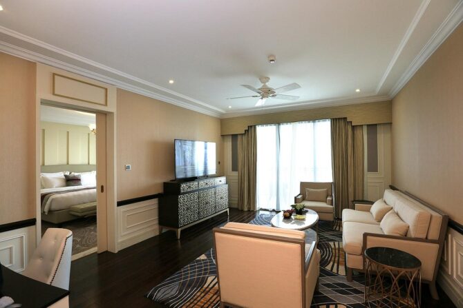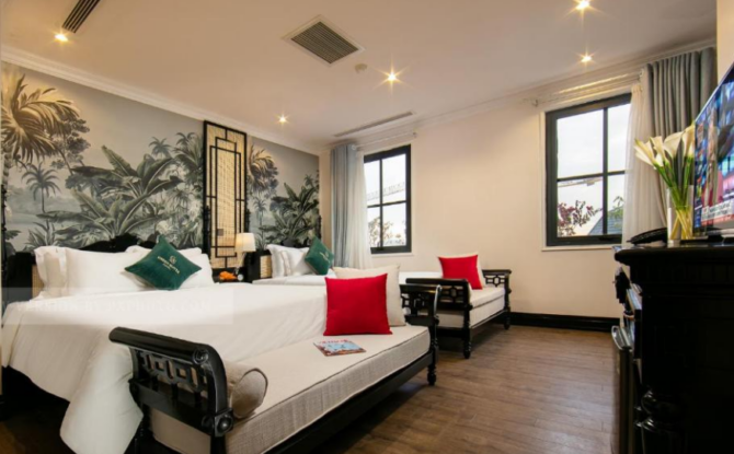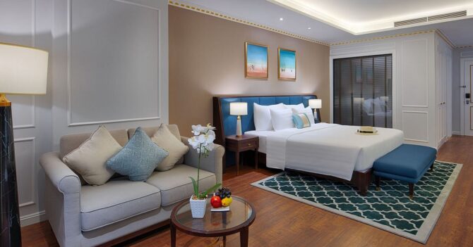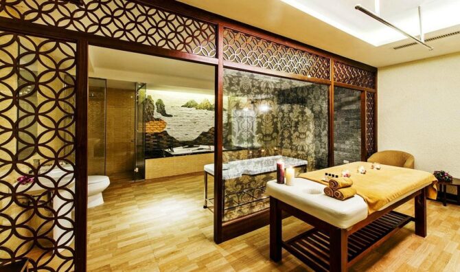 Отель Paradise Suites 5* — это воплощение элегантности. Каждый из 179 бутик-номеров представляет собой люкс, созданный в соответствии с ожиданиями современных путешественников со всего мира. Здесь останавливаются люди, стремящиеся к изысканности и высококачественному сервису. Он находится всего в нескольких шагах от пристани для яхт Туан Чау, входа в залив Халонг. Будучи единственным бутик-отелем высшей категории в этом районе, он является идеальным местом отдыха для людей, которые хотят увидеть объект Всемирного наследия ЮНЕСКО, наслаждаясь в то же время тишиной и спокойствием. Здесь для каждого найдется занятие по душе: от экскурсий по деревням, рыбацким фермам до велосипедных прогулок по мангровым полям или круизов по заливу. В ресторане Whisky Gallery подаются блюда интернациональной кухни, а также представлена большая коллекция виски.