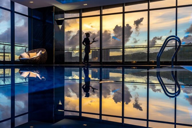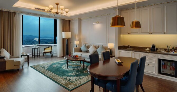 Отель Ramada Hotel & Suites by Wyndham Halong Bay View — это первый апарт-отель международного стандарта 5 звезд в Хонгае, Халонг-сити. Все гости, остановившиеся здесь, будут наслаждаться совершенной системой современной инфраструктуры, широким обзором залива Халонг, видами на мост Бай Чай и парк Sun World. Номера оформлены в современном стиле с использованием естественного освещения. На 31-м этаже находится открытый бассейн. К услугам гостей: сад, зона отдыха на крыше, Скайбар, Винный бар, винно-сигарная зона, тренажерный зал, караоке, СПА-салон, комната для вечеринок, конференц-зал. В ресторане PALMS утром накрывается завтрак. Лобби-бар и лаундж работают 24 часа в сутки, осуществляют доставку еды и напитков в номера.