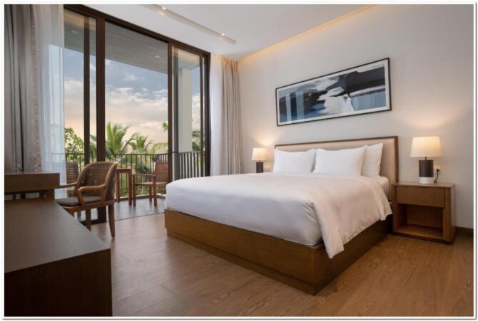 Premier Village Ha Long Bay Resort 5* — курортный отель, построенный в полукилометре от пляжа Бай Чай. Все номера оформлены в современной стилистике, без лишнего декора и ненужных вещей. Соблюдена пастельная гамма в бежевых и коричневых тонах. Предусмотрены панорамное остекление и просторные балконы/террасы. Во дворе каждой виллы оборудована зона для барбекю, разбит сад, установлен бассейн с лаунджем по периметру. Наряду с рестораном работает магазин свежих продуктов. В нем можно купить рыбу или мясо для гриля. Утром для гостей сервируется континентальный или полный английский завтрак. Заботливый персонал принесет еду и напитки в номер, если постоялец не захочет спускаться в ресторан. Гости высоко оценивают сервис, комфортные условия проживания и полное соблюдение стандартов азиатского гостеприимства.