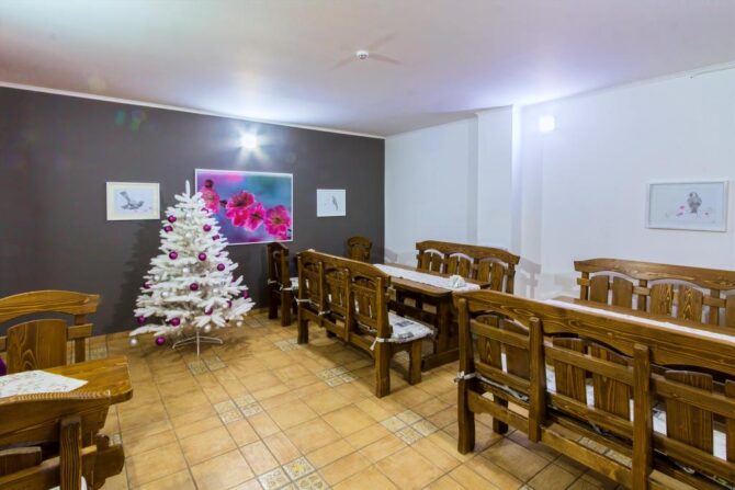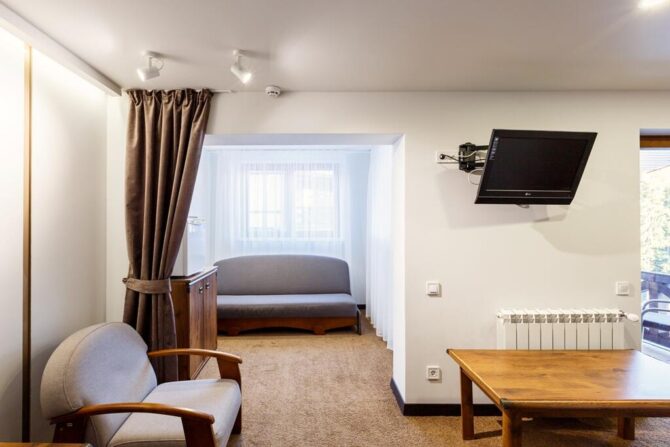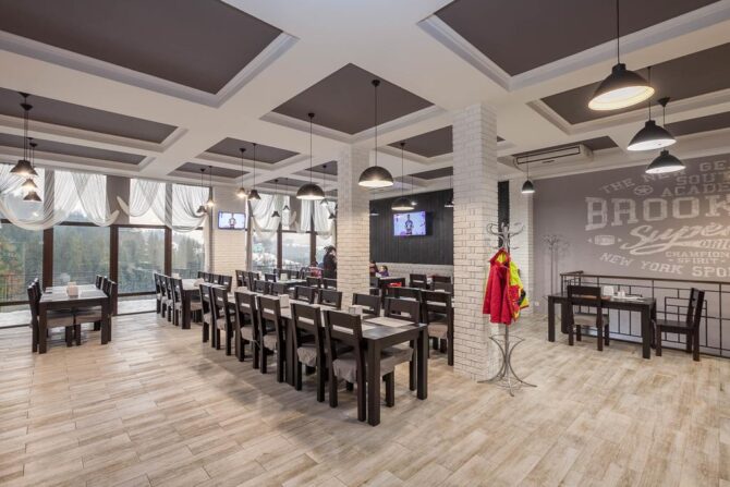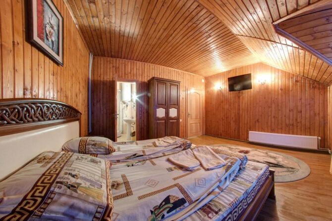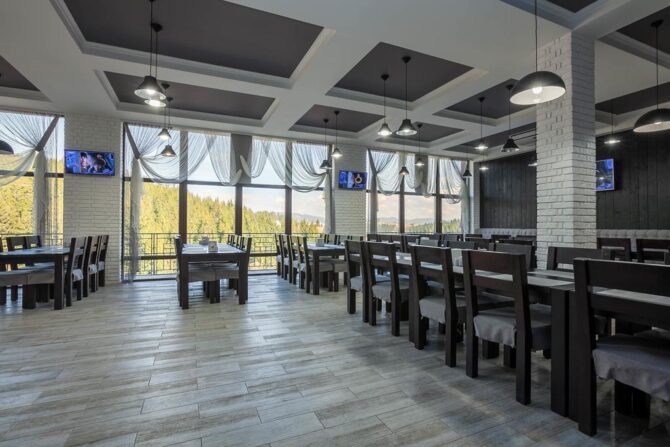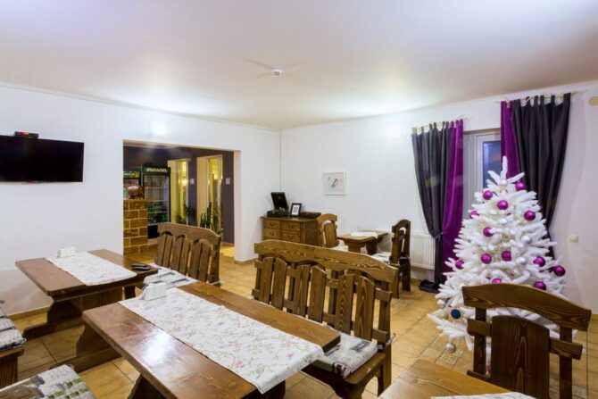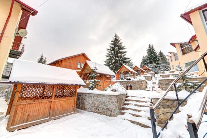Diejenigen, die lernen möchten, wie man auf den Berghängen Ski fährt, bleibt am besten in Gorgany. Eine eigene Schule und erfahrene Instruktoren helfen Skianfängern, schnell Skikenntnisse zu erwerben. Der Skilift befindet sich in der Nähe, die Pisten sind relativ sanft und die freundliche Atmosphäre des Hotels wird für weitere Ruhe sorgen. Wenn Sie durch die Nachbarschaft schlendern und die lokale Natur erkunden möchten, können Sie in Trembita übernachten. Diese Pension verbindet harmonisch die traditionelle Kultur der Karpaten und die Nähe zu den wichtigsten Wanderwegen.