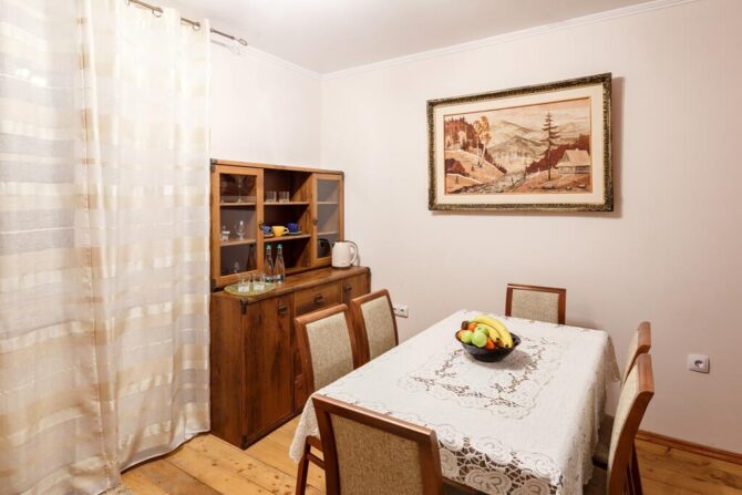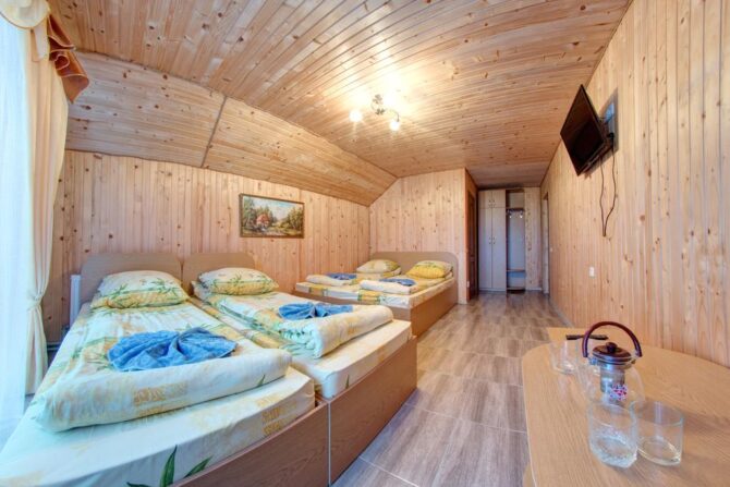 Ein weiteres Gasthaus befindet sich auf dem Gelände von Gorishkiv in Jablunica. Die Gäste werden in Zwei-, Drei-, Vierbettzimmern sowie in einem Haus mit vier separaten Schlafzimmern und einer gemeinsamen Terrasse untergebracht. In der Nähe der zweistöckigen Cottages befindet sich ein Grillplatz mit Pavillons und Tischen. Zu den Freizeitaktivitäten zählen Skifahren, Angeln oder Billard. Es ist ein großartiger Ort für große Unternehmen. Häuser und Räume zeichnen sich durch eine erhöhte Schalldämmung aus, so dass niemand den Schlaf von jemandem stört. Wander- und Radwege finden Sie in der Umgebung. Souvenirs können Sie auf dem 100 m entfernten Markt kaufen.
