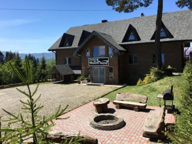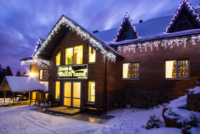 Ein gemütliches Heimhotel liegt 2 km von Jablunica entfernt. Diese historische Stätte war einst die Grenze zwischen Polen und Österreich-Ungarn. Die malerische Natur und Architektur des Hotels selbst fügt Farbe hinzu. Es sieht aus wie ein solides altes Herrenhaus, hinter dessen Mauern der Reisende auf Komfort und ein herrliches Abendessen wartet. In unserem Fall ist es ein Frühstück mit lokalen Produkten, zubereitet von den geschickten Händen des Küchenchefs des Restaurants Hoch Land. In fußläufiger Entfernung befindet sich ein Minimarkt «Norma», in dem Sie jedes Essen kaufen können. Freuen Sie sich auf eine Terrasse mit Blick auf die Karpatengipfel Hoverla, Petros und Dragobrat. Öffentliche Verkehrsmittel sind 1 km entfernt. Zum Komplex «Bukovel» — 7 km entlang einer guten Straße. Das Hotel verfügt über einen Raum zum Trocknen von Skiuniformen und eine Skiaufbewahrung.