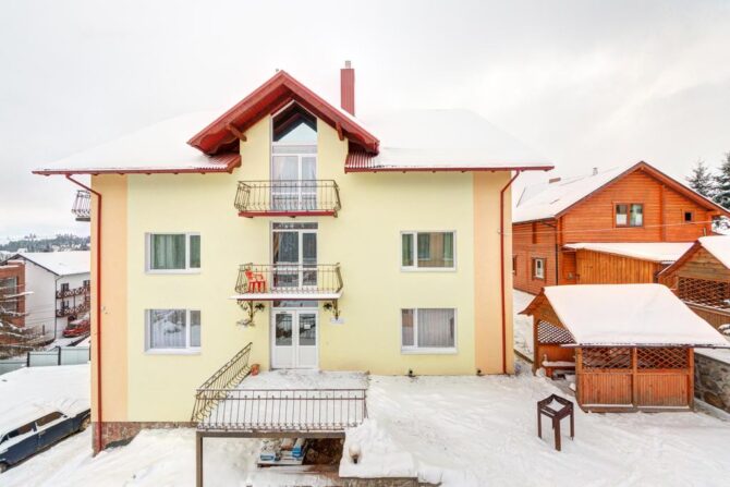 Ein vierstöckiges Haus mit einem komfortabel gebauten Block am Eingang empfängt Ab 2019 Gäste. Das Mini-Hotel liegt verkehrsgünstig in der Nähe der Haupthänge des Jablunica Resorts. Der Seilschlepper ist 100 m entfernt, so dass Anfänger Slalomskifahrer und Skifahrer hierher kommen. Die Zimmer verfügen über einen Balkon mit Blick auf die Berge Hoverla und Petros. Der Besitzer des Hotels Pavel verdiente viel Lob aufgrund seines Wunsches, den Gästen zu helfen, sich an das Gebiet zu gewöhnen. Tatsache ist, dass das Gästehaus an der Straße bergauf liegt. Wenn viel Schnee fällt, kann das Auto ausrutschen. Der Besitzer half den Gästen, diesen Abschnitt der Straße mehr als einmal zu passieren und war immer in Kontakt.