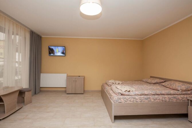 Das Hotel Toga ist als Gasthaus positioniert. Niedrige Preise, gemütliche Zimmer, mit Holz dekoriert, ein Pavillon mit Grill im Hof und gestapeltes Brennholz in der Nähe des Eingangs zum Tor lassen Reisende diese gastfreundliche Ecke besuchen. Im Restaurant werden europäische Gerichte serviert. Morgens wird ein kontinentales Frühstück serviert. Lebensmittel auf dem Zimmer können arrangiert werden, obwohl der nächste Supermarkt, Norma, 100 m entfernt ist. Von der Autobahn zum Hotel führt eine bequeme Anfahrt. Der Ort ist ruhig, das Parken vor Ort ist kostenlos. Es gibt eine Wechselstube.
