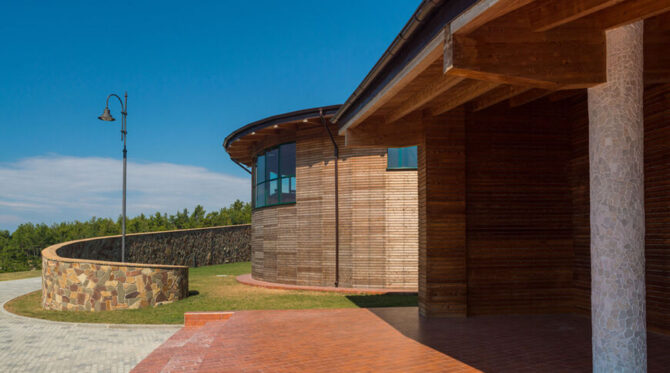 Здание винодельни представляет собой комплекс невысоких деревянных построек разной формы. Высокое качество продукции определяется несколькими базовыми факторами: