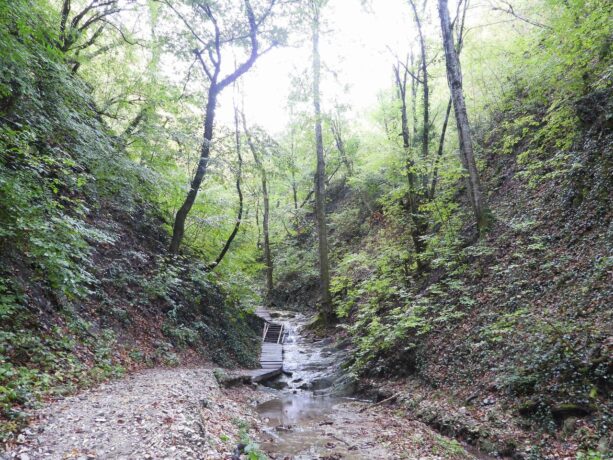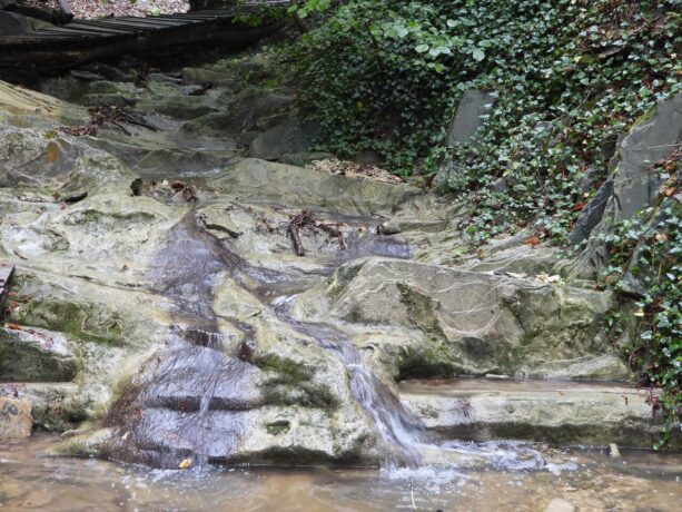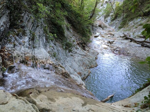 - живописные природные ландшафты: ручьи, водопады, рощи пицундской сосны и отвесные скалы, плоские поверхности которых густо покрыты зарослями хвойных деревьев и кустами ежевики;