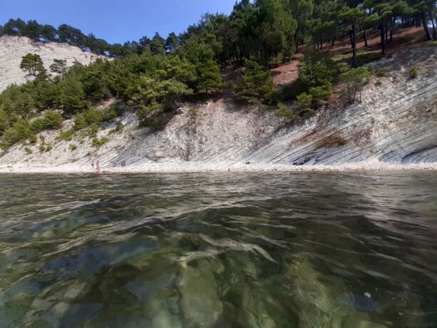 В солнечную погоду туристы с интересом рассматривают с высокого берега красочные окрестности, в том числе Геленджик и его достопримечательности. Для тех путешественников, кто не любит толп отдыхающих, лучше не посещать Голубую бездну в августе. Путь сюда из Дивноморского идет по дороге к Джанхоту. Первый поворот направо – это 550-метровая дорога, которая ведет к конечной цели.