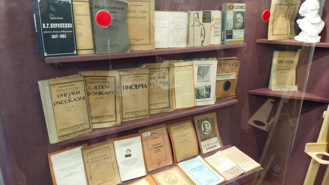 - документами и фотографиями, рассказывающими о творчестве и жизни В. Короленко.