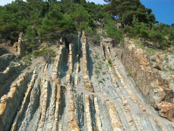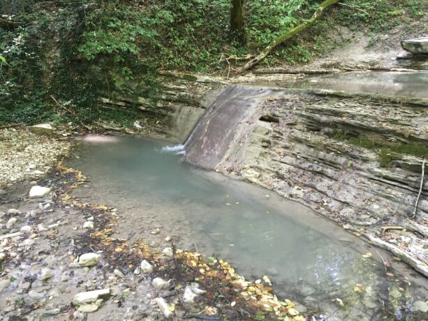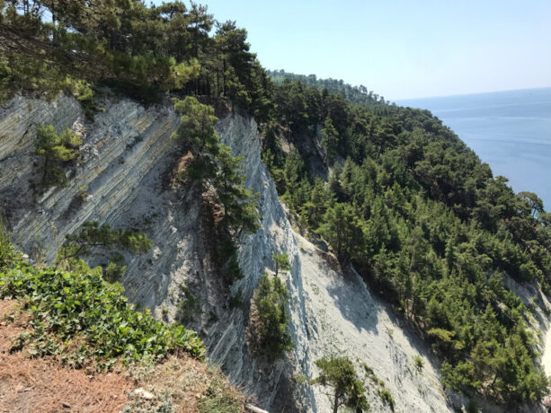 - эрозии горных пород, из которых состоят здешние каменистые берега: мергеля и песчаника.