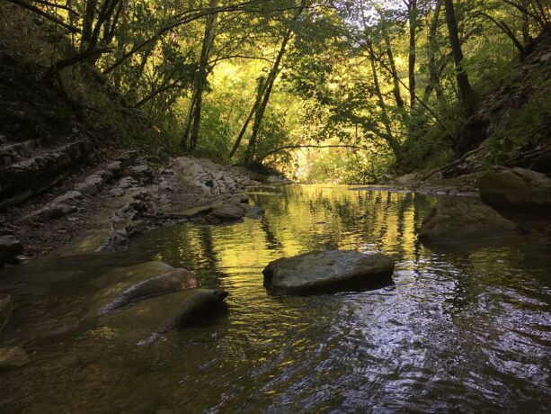 По тропе, проходящей по живописному каньону, туристам встречается множество самых разных деревьев: ивы, калины, каштаны, грабы и другие. Путь к началу тропы совпадает с маршрутом к роднику Наташа. Экологический парк лучше всего посещать весной и осенью после дождей. Летом, когда Тхаб пересыхает, каскады не удивят бурными потоками воды.