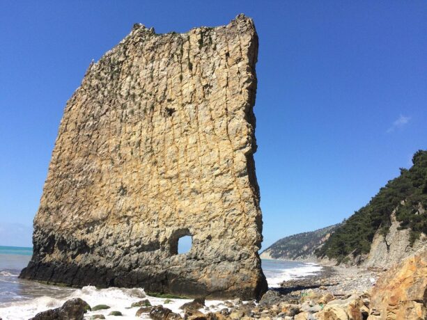 Название каменного исполина, расположенного перпендикулярно морскому побережью, объясняется необычной формой. Прямоугольная скала напоминает большой парус. Каменное творение природы примыкает к морскому побережью. В далеком прошлом скала была частью массивного каменистого берега, который в течение длительного периода постепенно разрушался из-за нескольких процессов: