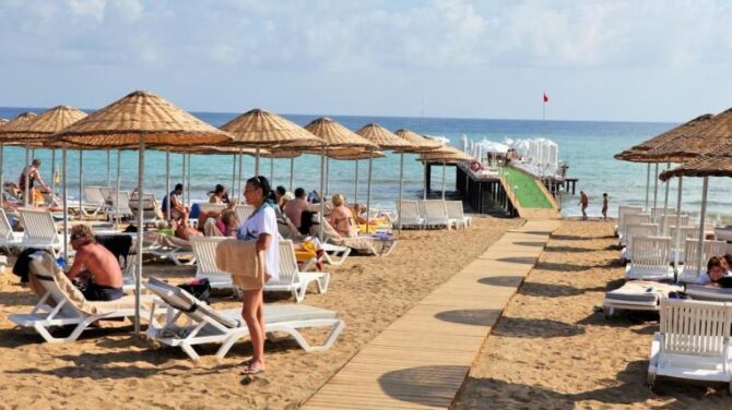 Само море теплое и чистое, сильных волн нет. На пляже есть бар, в нем предлагают безалкогольные напитки и пиво. При входе на пляж с 10 утра до 16 вечера пекут вкусные турецкие лепешки гёзлеме, которые можно и спечь вместе, и покушать за просто так. Если на обед в гостиницу возвращаться нет желания, то с двух до четырех часов дня в здесь в баре предлагают картошку фри, гамбургеры, пиццу. У бара стоят автоматы с кофе, напитками и айраном.