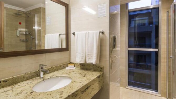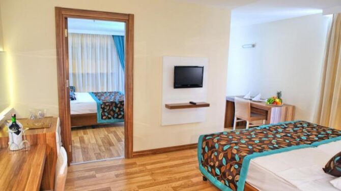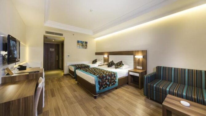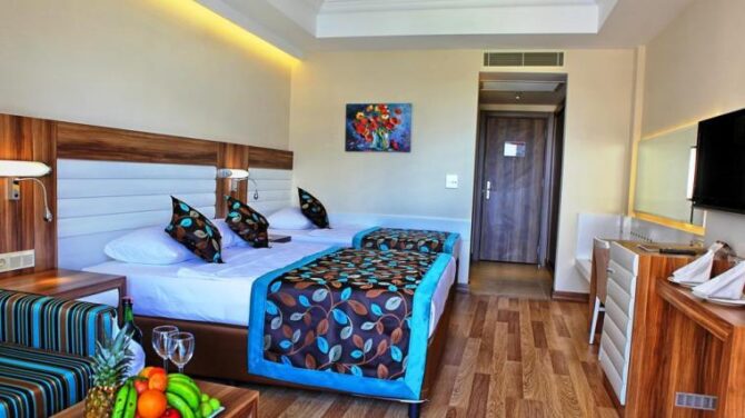 Рената, Екатеринбург: «Приехали в отель утром, через 5–10 минут дали номер, но вместо эконом рум — семейный, чему мы были очень рады. Окна выходили на бассейн, в обеих комнатах телевизор, в ванной и душевая кабина, и ванна. Уборка и смена полотенец абсолютно без нареканий. Из минусов отмечу необходимую плату за сейф».