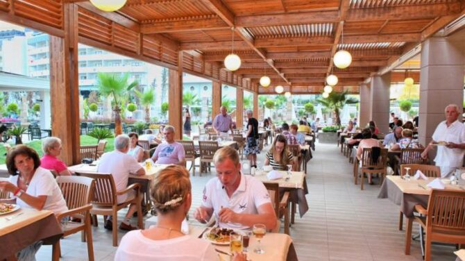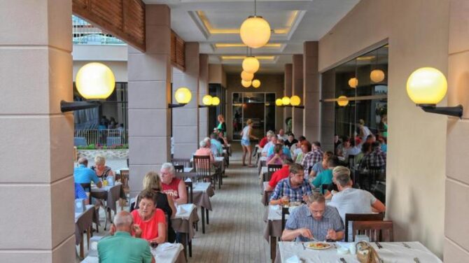 Юлия, Киев: «Питание очень разнообразное: курица, индейка, говядина и рыба. Сладкий стол выше всяких похвал. Из фруктов были дыни, арбузы, яблоки, апельсины и грейпфруты. Очень вкусная пицца в снек-баре. У бассейна с 12 часов делают вкуснейшие гамбургеры. Кто боится поправиться, лучше закрывать рот на замок».